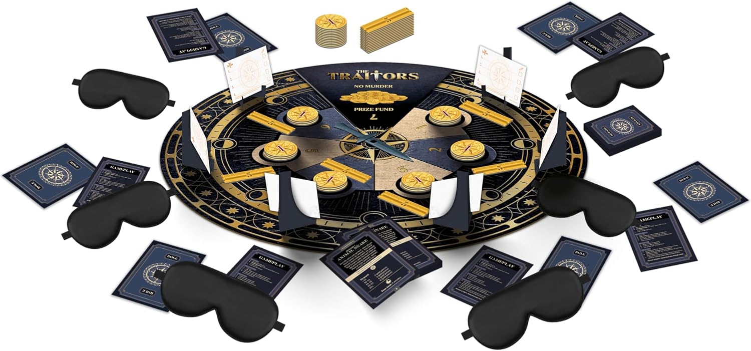 Step into the world of The Traitors Board Game — a suspense-filled battle of strategy and deception. Inspired by the hit TV show, this immersive game invites 4 to 6 players to complete daring missions, earn gold, and grow the prize fund — all while a hidden Traitor works from within to sabotage your efforts. Venture into the Armory to discover rewards and shields, gather at the Round Table to vote out suspects, and stay one step ahead to avoid being murdered. Trust no one, outsmart everyone, and uncover the Traitor before it's too late. Will you be the one to claim victory, or fall victim to betrayal? Recommended for 4-6 players, ages 12 and up.