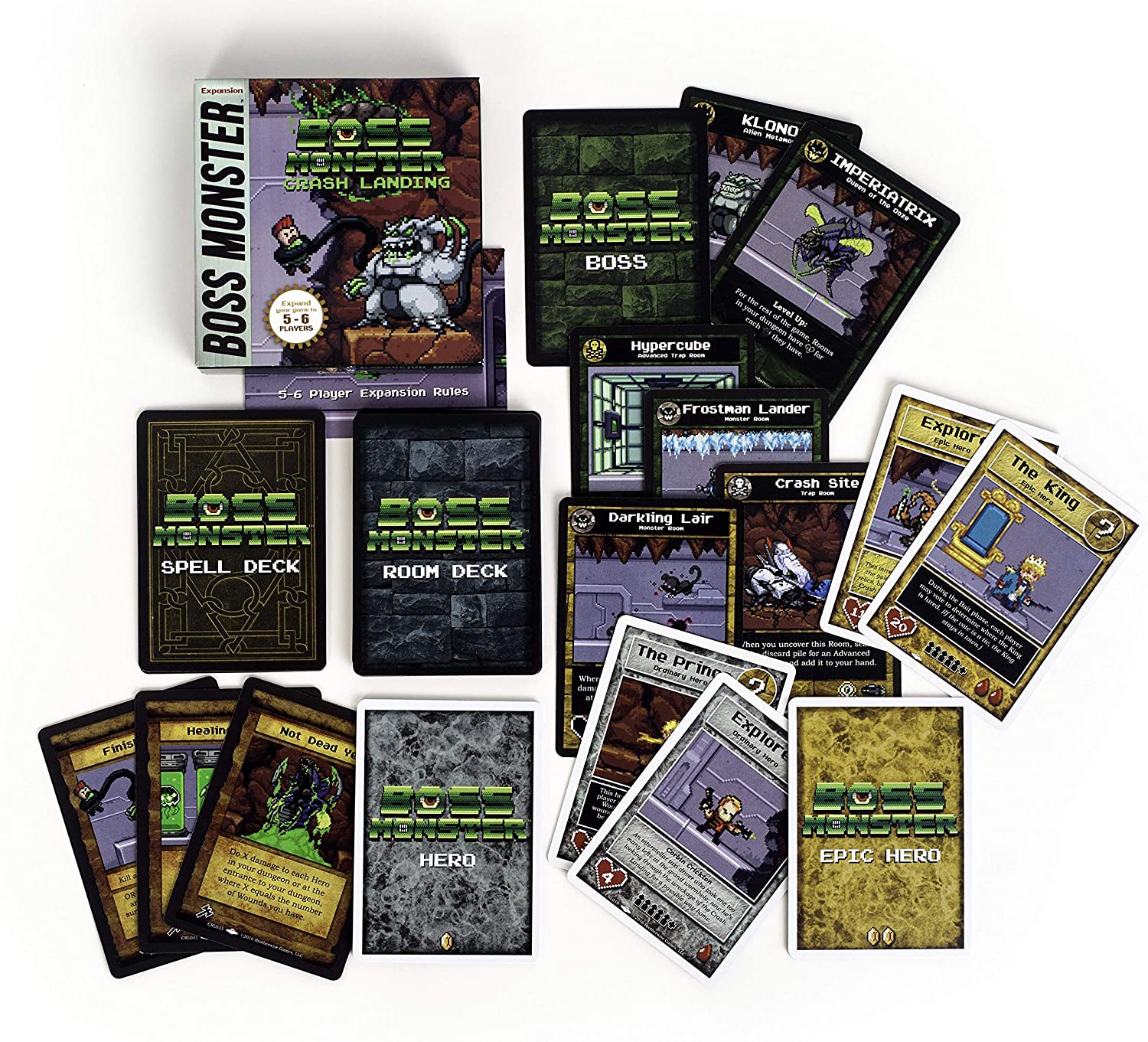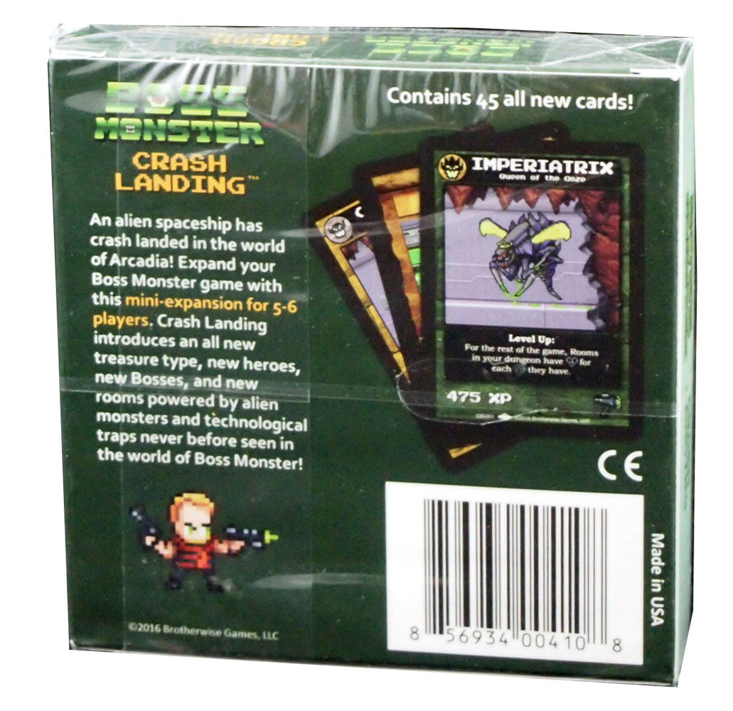 Crash Landing is a mini-expansion of 45 cards. It requires Boss Monster 1 or Boss Monster: The Next Level to play. It is fully compatible with all Boss Monster sets.