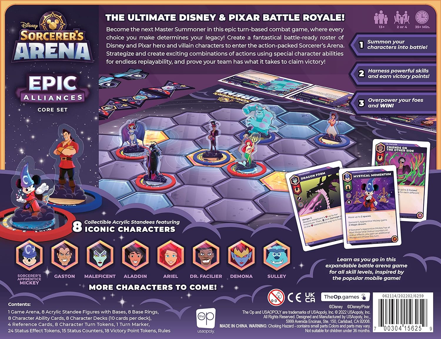 Become the next Master Summoner in this Disney-themed strategic battle arena game, where every choice you make determines your legacy! Recruit a fantastical battle-ready roster of Disney and Pixar heroes and villains, creating incredible combinations that provide endless replayability. Once youve summoned your characters to battle in the Sorcerers Arena, strategize their every move using their unique abilities to earn the most victory points. Learn as you go in this expandable tabletop game inspired by the popular mobile game, overpowering your foes to win the ultimate Disney and Pixar battle royale!