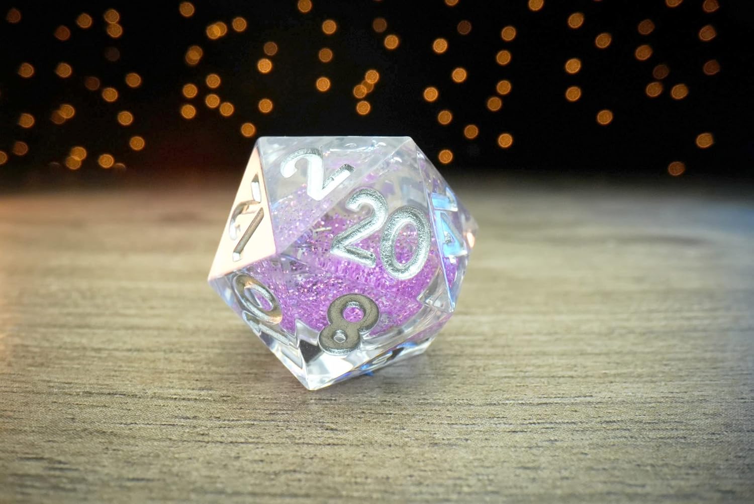 From Fanroll's innovative Kickstarter, Elixir dice are infused with glittery liquid cores that swirl when rolled. When the liquid cores are molded into the dice, the heat from molding creates a small bubble in the liquid core. Since the bubble in the liquid is constantly moving, we have not seen an effect on rolling.