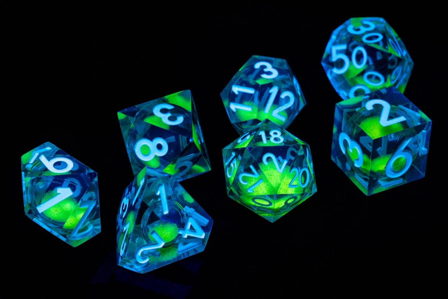 Fanroll Dice: Shadow Light UV Reactive Elixir Liquid Core 7pc Dice Set