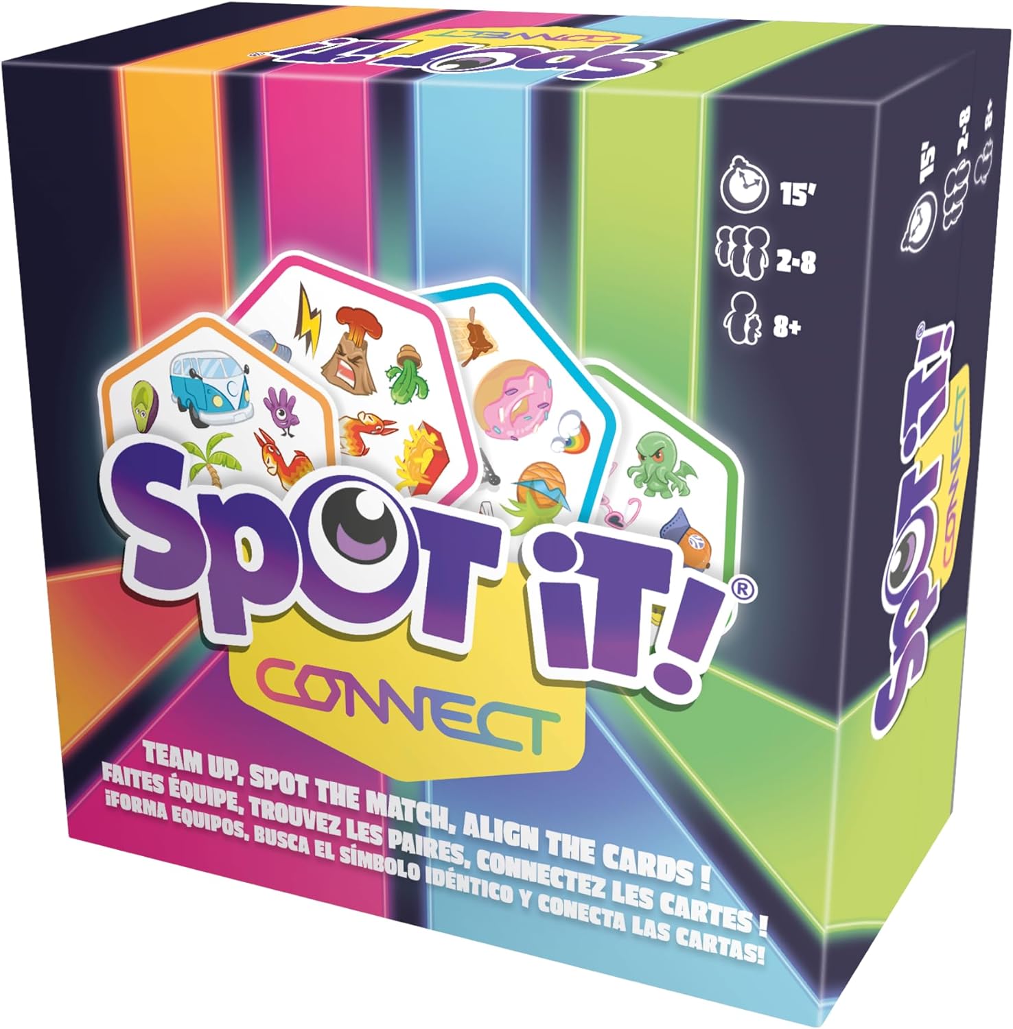 Fun, fast-paced and frantic, Spot it! Connect is THE ultimate reflex game for a wild time!