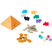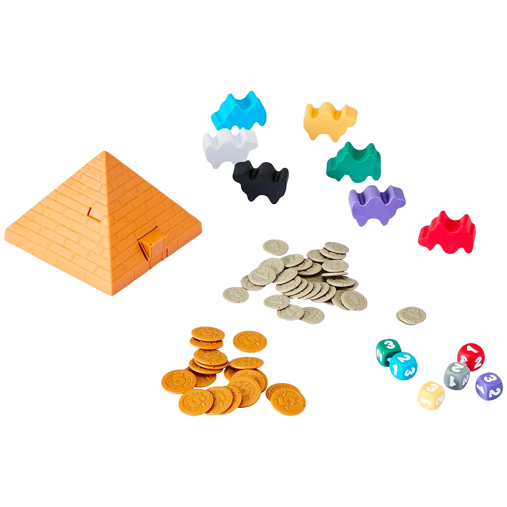 In Camel Up, players bet on five racing camels, trying to guess which one will win the race around the pyramid. The earlier you place your bet, the more you can win; that is, if you guess is correct! The movement of the camels depends on how the dice come out of the pyramid dice shaker, which releases one die at a time. Prepare for a camel race like none other!