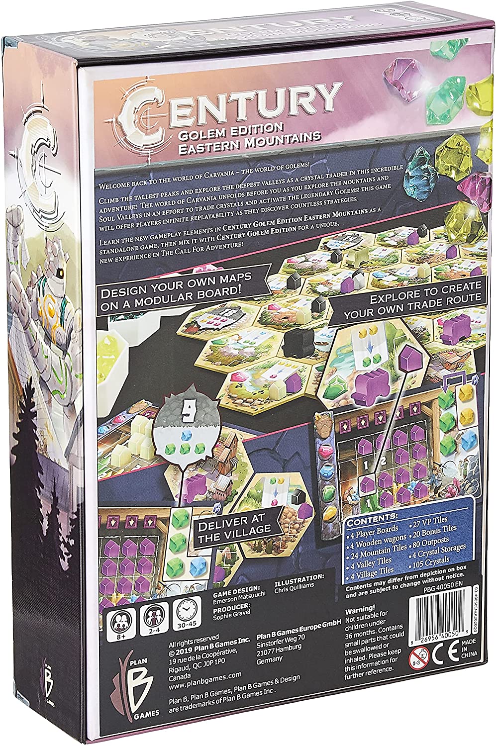 Return to Carvania in Century Golem: Eastern Mountains. Climb the tallest peaks and explore the deepest valleys in this incredible adventure! Players resume their roles as crystal traders and are now out exploring the Carvania mountain ranges and associated valleys in an effort to trade crystals and activate the legendary Golems!