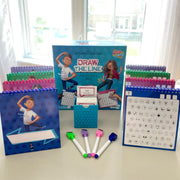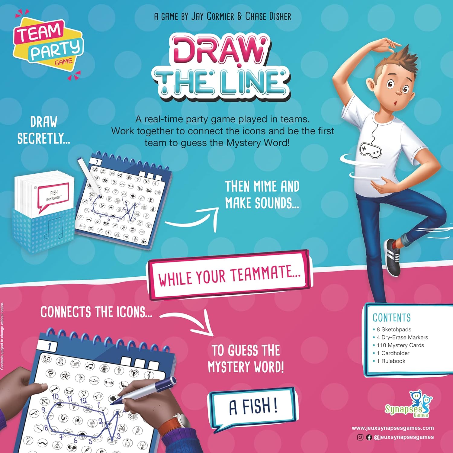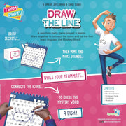 Draw the line is a party game where all teams play simultaneously. The sketchers must draw a mystery word by connecting icons on their sketchpad. They then need to mime those icons and make noises related to them so that their respective teammate can guess which icons they need to connect on their sketchpad to recreate their sketcher’s drawing. Players must act fast if they want their team to be the first one to find the mystery word.