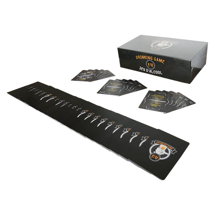 F/U THE DRINKING GAME is a game that can be played in small or large groups. The game is very simple: each in turn, you draw a card that will determine the action you must take to advance the game and whether or not you drink.
