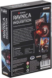 Join the Gatewatch or pledge your loyalty to Nicol Bolas in Ravnica: Inquisition, a social deduction game set on the Magic: The Gathering plane of Ravnica. Each player takes on the role of a representative of a Ravnican Guild that is either loyal to the Gatewatch or an Agent of Bolas. The Gatewatch loyalists are tasked with discovering who the Agents of Bolas are, while the Agents of Bolas simply need to survive in order to further the schemes of Nicol Bolas.