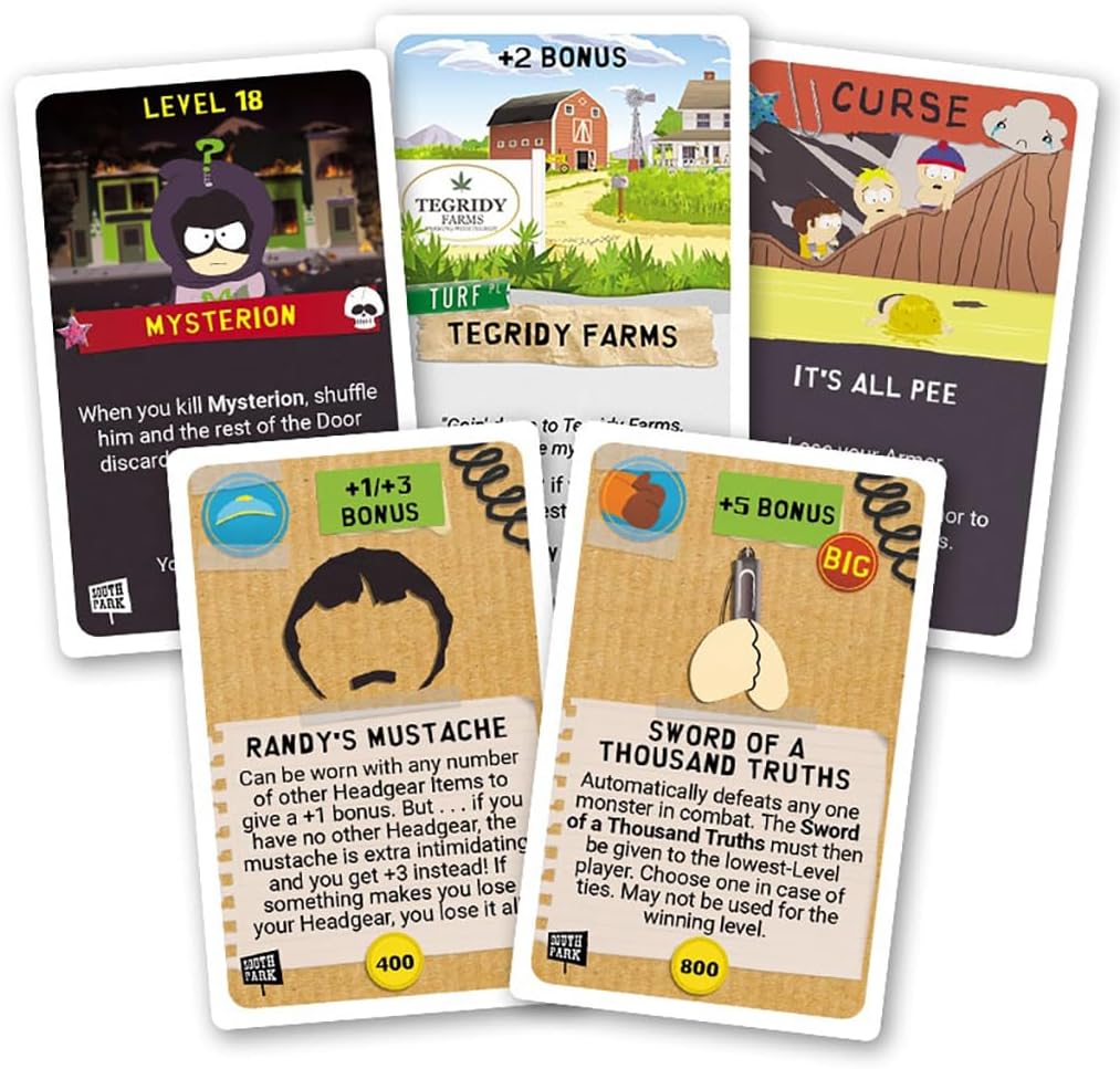 Have yourself a time combining the fun of monster slaying and treasure hunting with the random antics of South Park in this Munchkin game! Take on the role of a new kid at South Park Elementary and equip yourself with Items such as Kenny’s Throwing Star or Towelie, and acquire Allies like Butters Stotch to defeat Beelzaboot, ManBearPig, and other monsters! Avoid curses like Pandemic Special or backstabbing moves by other players in your super sweet ascension to Level 10!