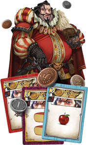 The bustling market in Nottingham is filled with goods from all over the kingdom. Most of it is entirely legal, however, Prince John is looking to make sure no contraband gets sold. He’s tasked the Sheriff to inspect Merchant’s wares, looking for any illicit goods. The Sheriff’s shrewd, but not above taking a bribe to look the other way. Which Merchant will end up getting the best goods through and make the largest profits in the market stalls?