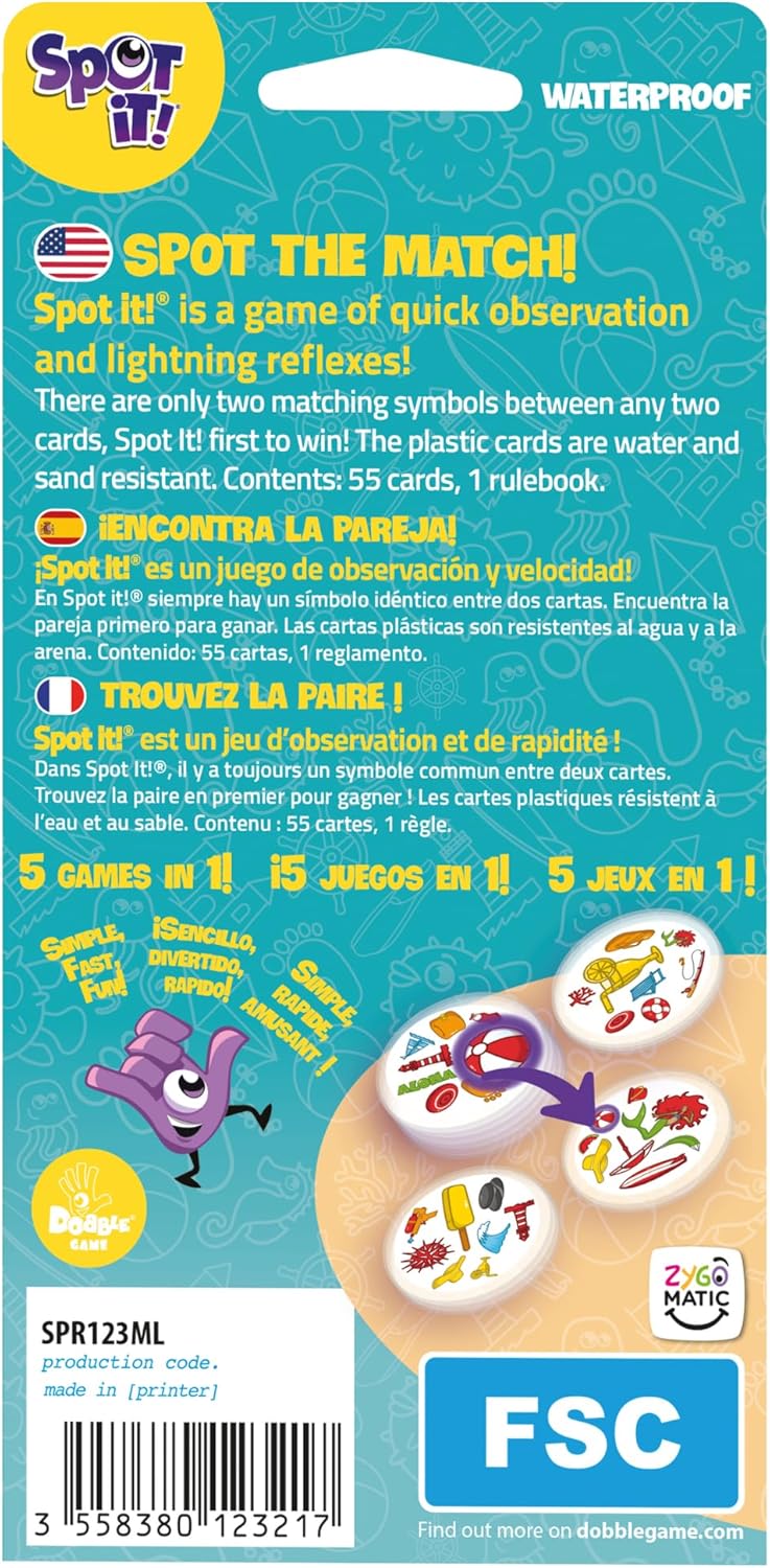 Test your observational skills and hone your reflexes with the award-winning gameplay of Spot It! Beach, a game of lightning-fast choices. With dozens of awards and possible versions married to elegant gameplay, Spot It! has become a global phenomenon.
