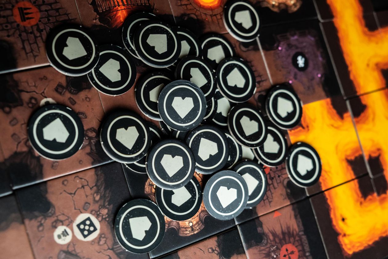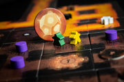 In Sub Terra II: Inferno's Edge, players will be progressively revealing new tiles, forming the board, mapping the volcanic temple from its sunlit entrance to its fiery core. As players explore through the temple, they will have to overcome obstacles, avoid hazardous terrain, and face the ferocious guardians of the 'artifact'. On each player's turn, after taking their actions, a random hazard will activate, making careful planning of actions essential to survival.