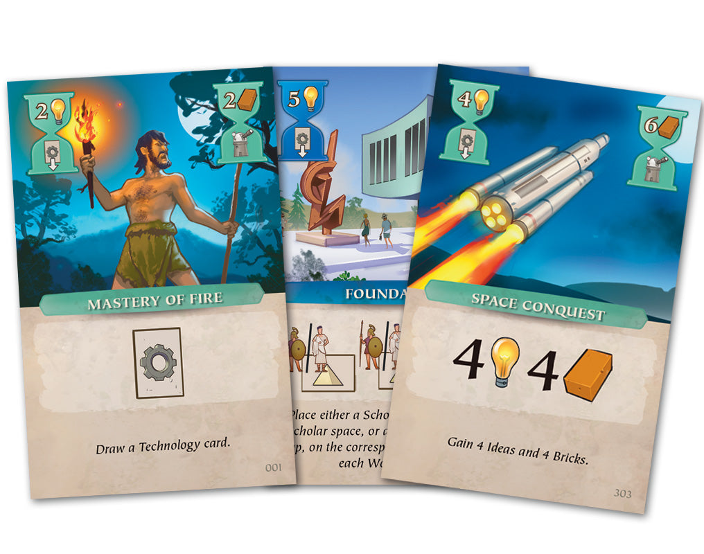 What if the entire history of the world had unfolded differently? What if the great empires of our history had never come into being? What if other early civilizations had risen to greatness instead? What if those civilizations never collapsed, but continued to grow throughout the centuries? The vanquished could have been the victors, and the colonizers could have been the colonized...After all, empires are won and lost on a roll of the dice! In First Empires™, each player takes command of a risingnation of ancient times. After rolling civilization dice, explorers spread around the world, taking advantage of conquest, to grown and expand. By combining dice with regions, each nation will develop and improve its civilisation to make History!