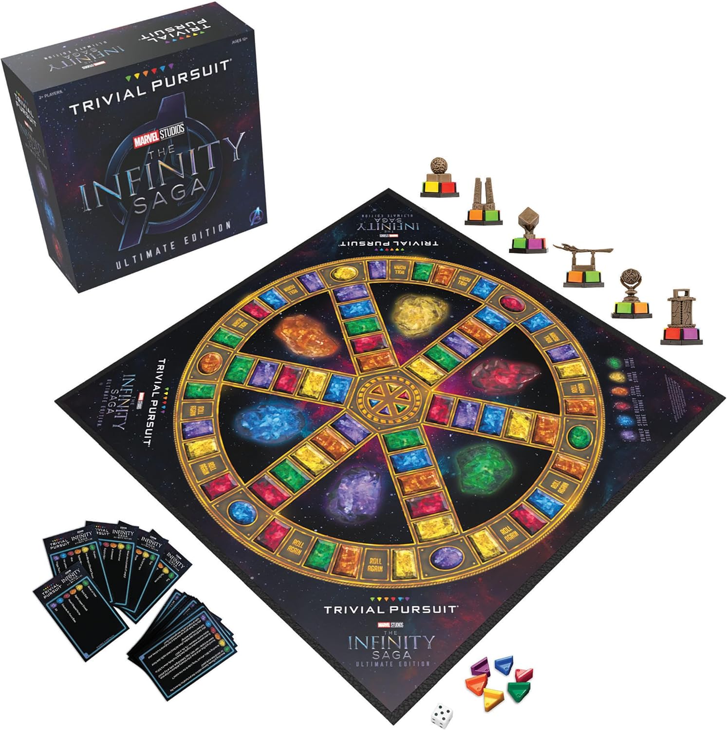 MCU superfans, assemble! Take on opponents with your vast knowledge of the Marvel Cinematic Universe in this trivia game for the best and biggest Marvel movie fans. Test your mastery of the multiverse with 1800 questions spanning films from Phase 1-3. Have the upper hand and seize all six coveted category wedges (Power, Reality, Space, Soul, Mind, and Time) to win! Includes full game board and custom Marvel-related movers such as the Tesseract, Loki’s Scepter, Aether Casket, Orb, Vormir’s Gate, and Eye of Agamotto.