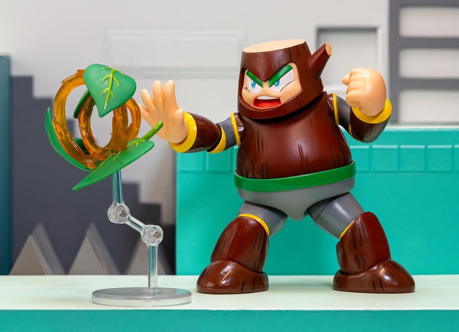 Mega Man Wood Man figure, CAPCOM collectibles, 1:12 scale action figure, articulated Wood Man toy, deluxe Mega Man figures, Robot Master collectible, effect accessory, Leaf Shield figure, premium collector packaging, retro gaming nostalgia, Mega Man Wave 3 toy, bark-covered Robot Master, CAPCOM video game memorabilia, nature-themed action figure.