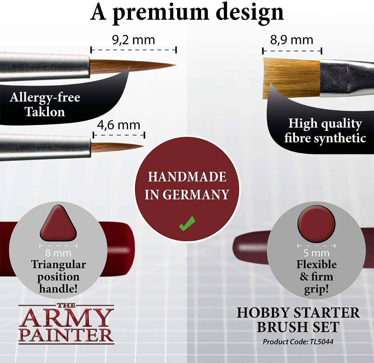 No Shedding, No Fall-out and No Stray Bristles — Handmade in Germany, this model paint brush set is of superb quality. The seamless nickel ferrules won’t rust or split, keeping the bristles together. They’re double crimped to the handles, so they won’t come loose even with frequent use. Brushes are made from the finest quality Toray synthetic fibers that hold the right amount of paint efficiently and ensure the smooth flow of paint from the bristles to a miniature. Get Excellent Value for Money! The Army Painter Hobby Starter Set allows you to start your model painting hobby with essential brushes that are packed together and carefully chosen for you, so you won't need to buy individual ones that can cost more money.