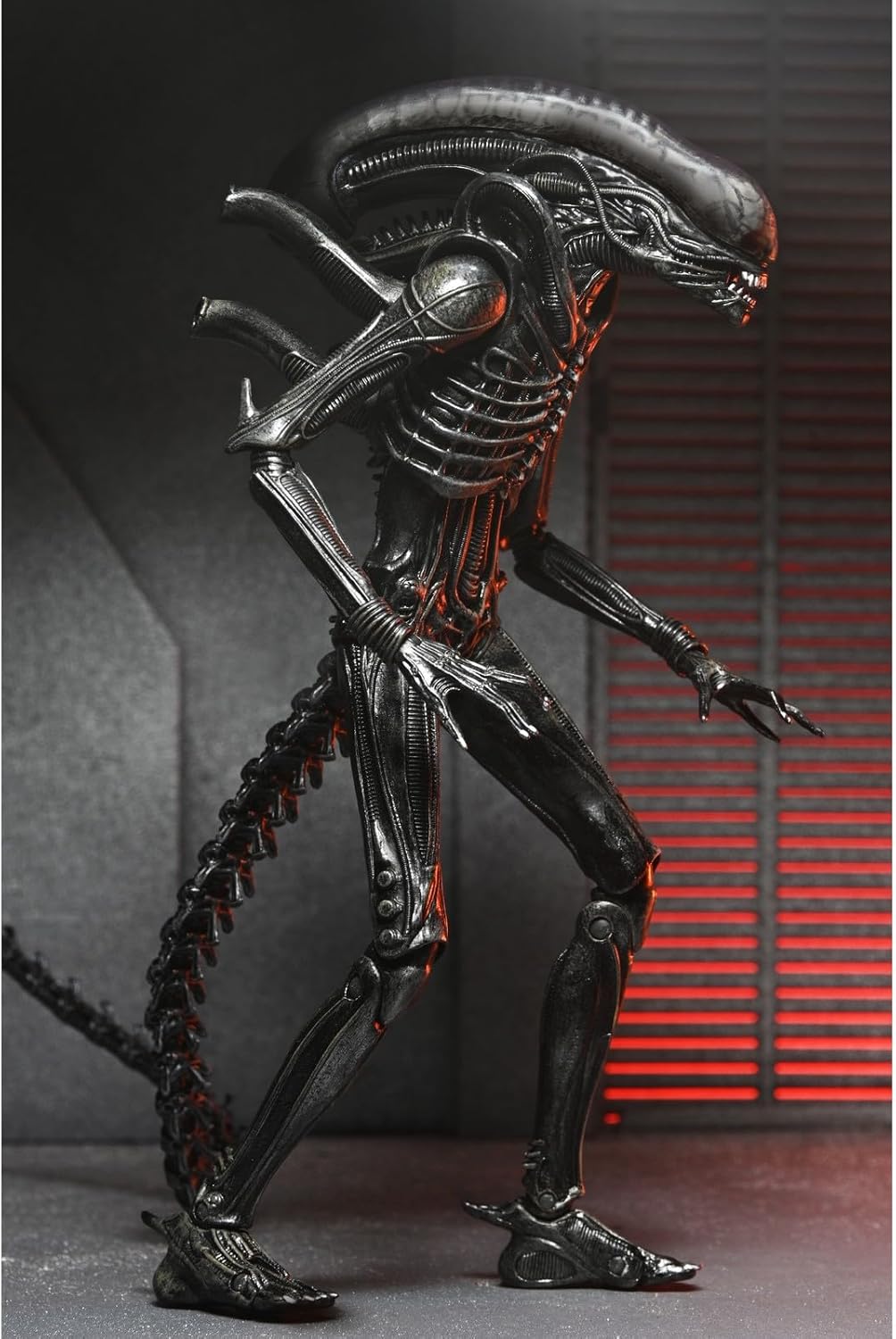Based on unreleased scenes from the film, this fully articulated concept action figure from NECA depicts the alien before its battle against the Weyland-Yutani security forces. After an intense firefight resulting in the alien's demise, its acid blood burns a hole through the floor, suspending the alien in the ceiling of the ship's lab.