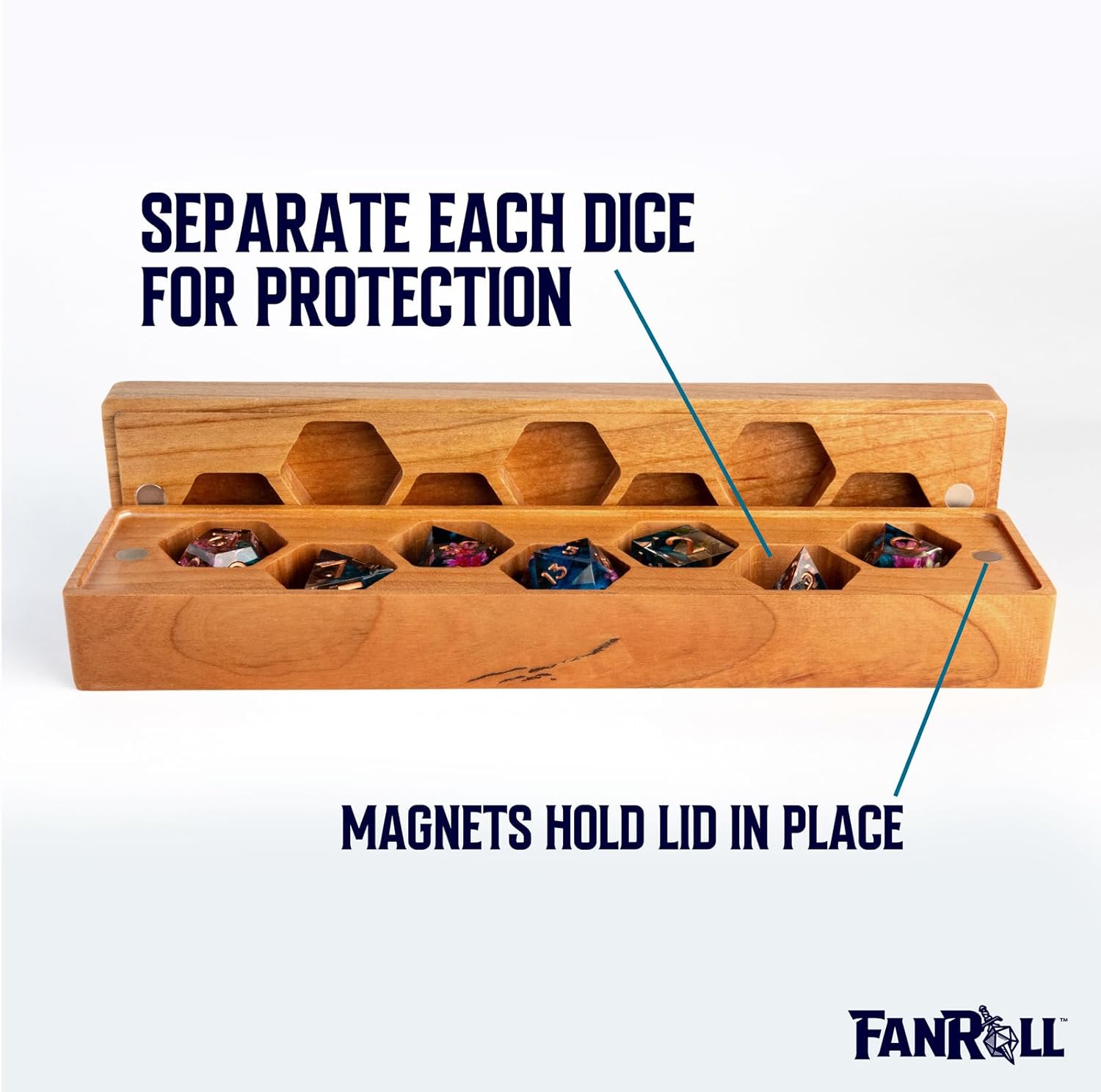 These wood dice cases are perfect for storing your dice sets. Separate each die for protection while carrying your most valued dice in style!