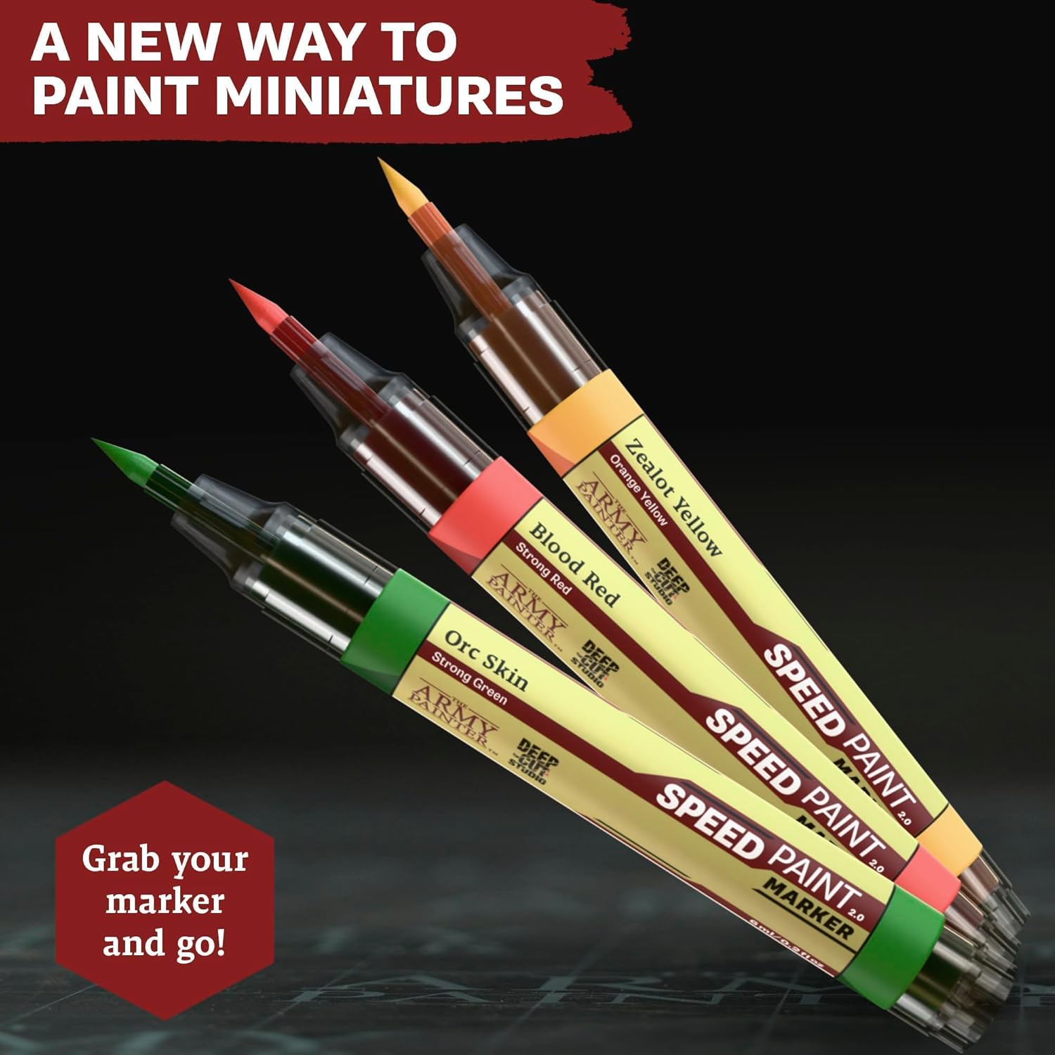 With Speedpaint Markers, you hold an entire hobby in your hands. Experiment with this Introductory Set and push the boundaries of your hobby. Try Speedpaint Markers with 3 ultra-rich colours that make painting easier than ever. Without a brush or palette, you can switch between colours in a heartbeat and take your hobby wherever you go. Our innovative Felt-Tech tip technology combines precision and even pigment distribution—cover large surfaces or paint the smallest details. Rethink your hobby.