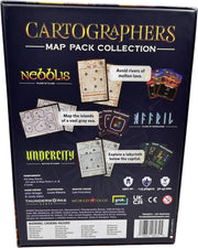 Explore new realms to chart their secrets and become the greatest cartographer in the kingdom! Cartographers: Map Pack Collection includes three new maps featuring thematic twists and gameplay additions to expand your game of Cartographers or Cartographers Heroes. The three maps (1: Nebblis, 2: Affril, and 3: Undercity) were previously sold separately in their own packaging but are now combined into a single boxed collection.