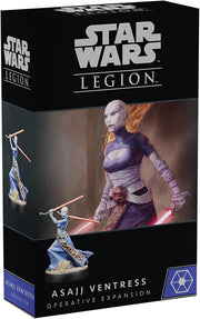 A sinister new character enters Star Wars: Legion in this new Operative Expansion! Asajj Ventress is a talented warrior who wields two curved lightsabers in a fighting style known as Jar’Kai with deadly efficiency. This pack adds her to the ranks of the Separatist Alliance along with four new Command Cards that give her the opportunity to unleash her unique skills on the battlefield.