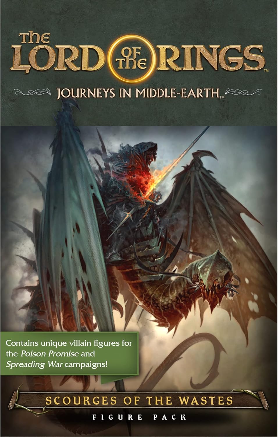 The Scourges of the Wastes Figure Pack for The Lord of the Rings: Journeys in Middle-earth can enhance both the Spreading War campaign and the Poison Promise downloadable campaign. This pack contains three beautifully-sculpted new miniatures of the primary villains of the two campaigns, as well as five new item cards and a new role that can be used in any Journeys in Middle-earth adventure. No collection would be complete without it!