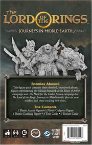 Whether you seek the Ember Crown or you're investigating a rash of thefts across Eriador in Bones of Arnor, you can bring the dastardly villains you face in these campaigns to life with the Villains of Eriador Figure Pack. This figure pack contains three detailed, unpainted plastic figures that bring the Gulgotar, Atarin, and Coalfang enemies from these campaigns to life on your tabletop, plus six new trinkets and three exciting new titles to help you combat them.