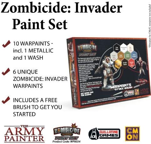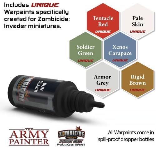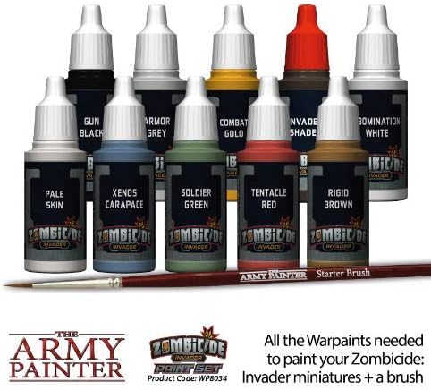 The Xenos are appearing as if out of air. Arm yourself and get ready to fight for the survival of humankind! Enhance your experience of playing Zombicide: Invader by playing with painted miniatures. This paint set contains unique and new Warpaints needed to paint your Xenos and your Survivors, humankind's last defenders - plus a free brush to get you started.