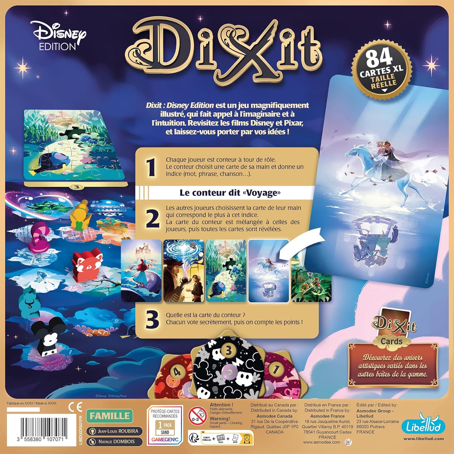 Dixit, le jeu de société onirique rencontre le plus grand studio d’animation de l’histoire ! Découvrez une nouvelle édition avec 84 illustrations oniriques inspirées par les dessins animés et films d’animation de Disney et Pixar ! Ces cartes sont compatibles avec les jeux du Dixit Universe : Stella, Odyssey, etc.