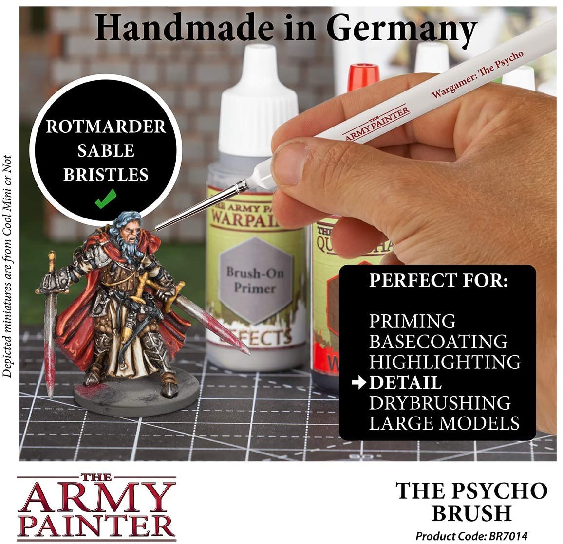 Le premier du genre conçu spécifiquement pour le Wargaming, le Psycho porte bien son nom car il est en effet très petit et ultra précis pour cette lignage parfait ou ce détail minuscule. Fabriqué à la main à partir de sable de Rothmarder de première classe et avec l'élégant et célèbre manche triangulaire - ce pinceau est sûr de devenir un succès auprès des peintres qui ne veulent rien de moins que la nano-précision.